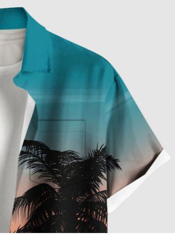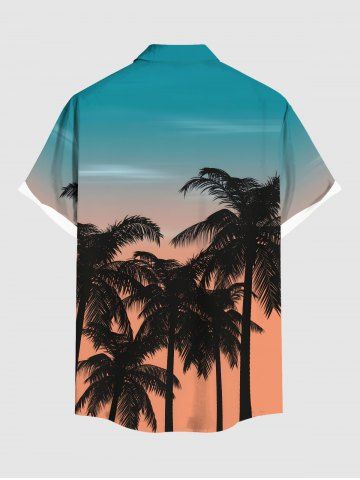 Short Sleeves Shirts > Plus Size Coconut Tree Ombre Sky Print Hawaii Button Pocket Shirt For Men