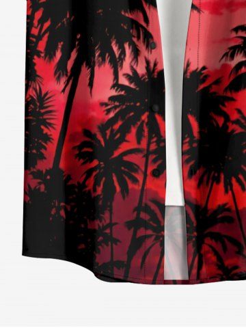 Plus Size Coconut Tree Ombre Sky Print Hawaii Button Pocket Shirt For Men - Red - S