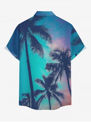 Plus Size Coconut Tree Ombre Sky Print Hawaii Button Pocket Shirt For Men - Dark Turquoise - 4xl