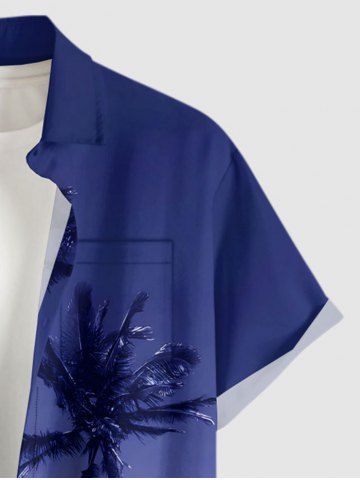 Plus Size Coconut Tree Ombre Sky Print Hawaii Button Pocket Shirt For Men - Blue - M
