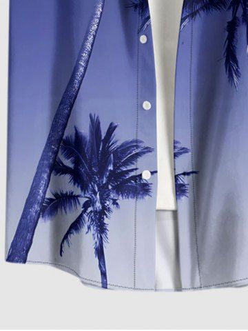 Plus Size Coconut Tree Ombre Sky Print Hawaii Button Pocket Shirt For Men - Blue - 2xl