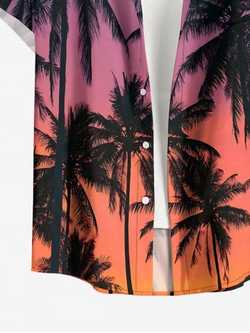 Short Sleeves Shirts > Plus Size Coconut Tree Ombre Sky Print Hawaii Button Pocket Shirt For Men
