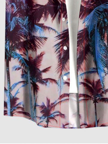 Plus Size Coconut Tree Ombre Sky Print Hawaii Button Pocket Shirt For Men - Red - M