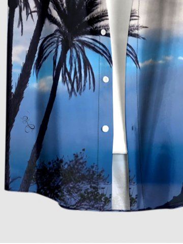 Plus Size Coconut Tree Ombre Sky Print Hawaii Button Pocket Shirt For Men - Sky Blue - S
