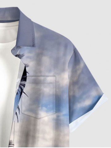 Plus Size Coconut Tree Ombre Sky Print Hawaii Button Pocket Shirt For Men - Sky Blue - 5xl