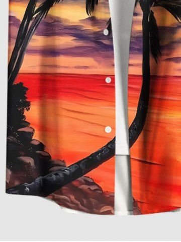Short Sleeves Shirts > Plus Size Coconut Tree Ombre Sky Sea Print Buttons Pocket Hawaii Shirt For Men