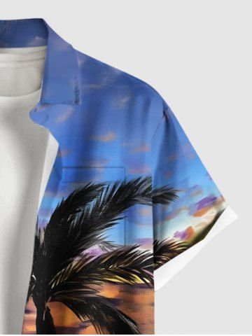 Plus Size Coconut Tree Ombre Sky Sea Print Buttons Pocket Hawaii Shirt For Men - Blue - 2xl