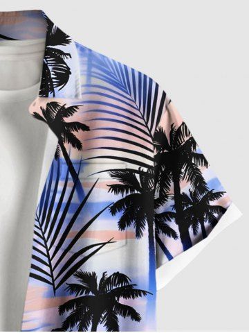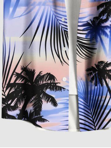 Plus Size Coconut Tree Ombre Sky Tropical Leaves Print Hawaii Button Pocket Shirt For Men - Blue - S