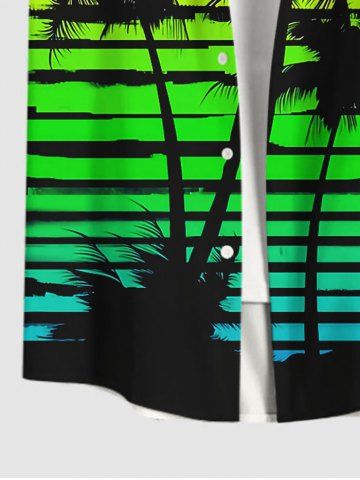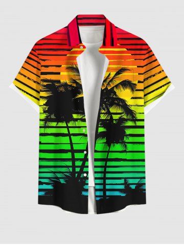 Short Sleeves Shirts > Plus Size Coconut Tree Ombre Striped Sun Print Hawaii Button Pocket Shirt For Men