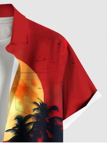 Short Sleeves Shirts > Plus Size Coconut Tree Ombre Sunset Moon Print Hawaii Button Pocket Shirt For Men
