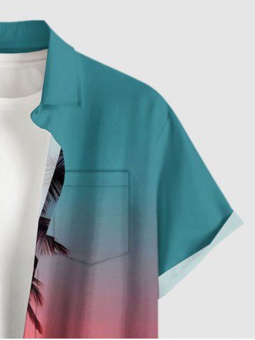 Short Sleeves Shirts > Plus Size Coconut Tree Ombre Sunset Sea Print Hawaii Button Pocket Shirt For Men