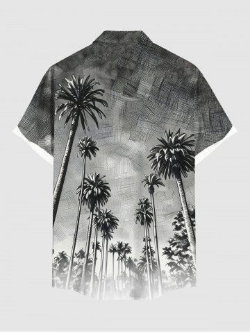 Plus Size Coconut Tree Ombre Textured Print Hawaii Button Pocket Shirt For Men - Light Gray - 2xl