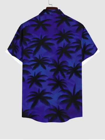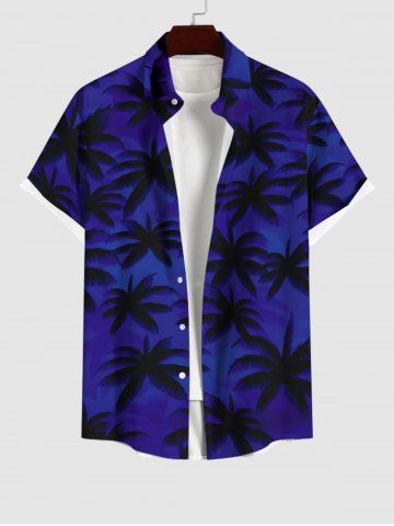 Plus Size Coconut Tree Overhead View Print Button Pocket Hawaii Shirt For Men - Deep Blue - L