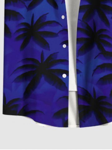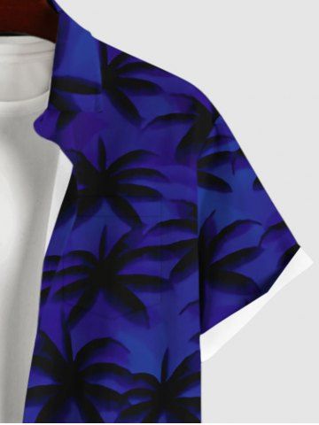 Plus Size Coconut Tree Overhead View Print Button Pocket Hawaii Shirt For Men - Deep Blue - 4xl