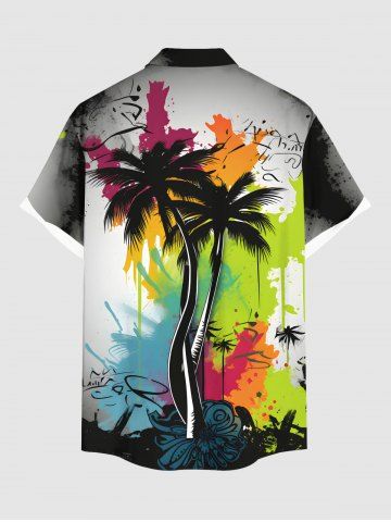 Short Sleeves Shirts > Plus Size Coconut Tree Paint Splatter Graffiti Print Buttons Pocket Hawaii Shirt For Men
