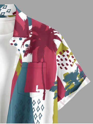 Short Sleeves Shirts > Plus Size Coconut Tree Painting Colorblock Print Hawaii Button Pocket Shirt For Men