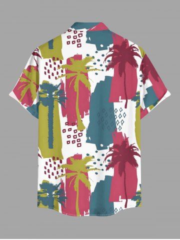 Short Sleeves Shirts > Plus Size Coconut Tree Painting Colorblock Print Hawaii Button Pocket Shirt For Men