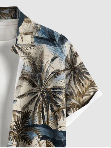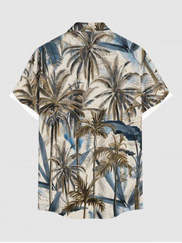 Plus Size Coconut Tree Palm Leaf Print Buttons Pocket Hawaii Shirt For Men - Light Coffee - L