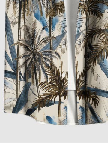 Plus Size Coconut Tree Palm Leaf Print Buttons Pocket Hawaii Shirt For Men - Light Coffee - 2xl