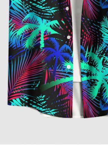 Hawaii Plus Size Coconut Tree Palm Leaf Print Buttons Pocket Shirt For Men - Black - L