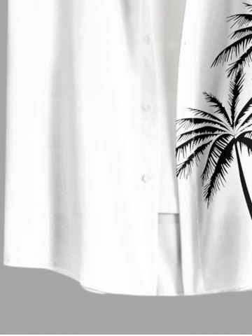 Plus Size Coconut Tree Parrot Print Buttons Pocket Hawaii Shirt For Men - White - S