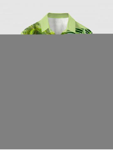 Plus Size Coconut Tree Parrot Tropical Leaf Print Hawaii Buttons Pocket Shirt For Men - Green - S
