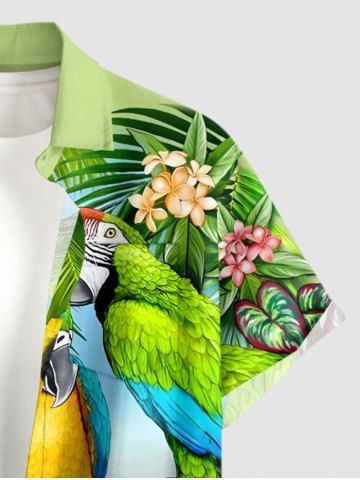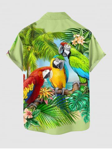 Plus Size Coconut Tree Parrot Tropical Leaf Print Hawaii Buttons Pocket Shirt For Men - Green - M