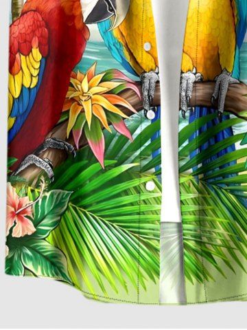 Plus Size Coconut Tree Parrot Tropical Leaf Print Hawaii Buttons Pocket Shirt For Men - Green - 3xl