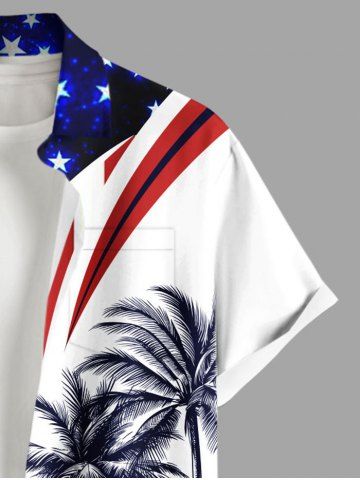 Short Sleeves Shirts > Plus Size Coconut Tree Patriotic American Flag Curve Print Hawaii Button Pocket Shirt For Men