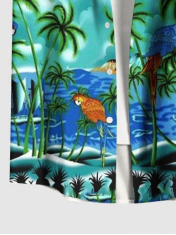 Plus Size Coconut Tree Pineapple Parrot Sea Tie Dye Cloud Print Hawaii Button Pocket Shirt For Men - Green - M