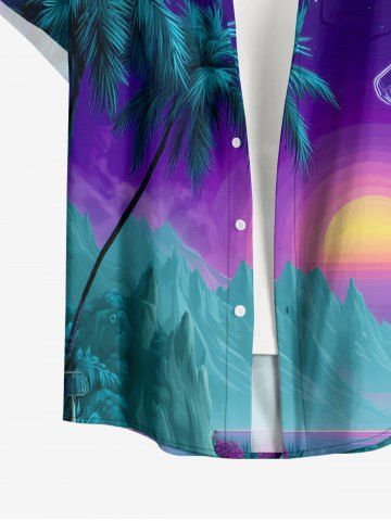 Short Sleeves Shirts > Plus Size Coconut Tree Planet Galaxy Mountain Print Hawaii Button Pocket Shirt For Men