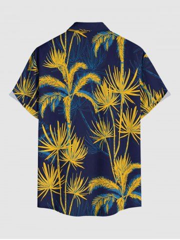 Short Sleeves Shirts > Plus Size Coconut Tree Plant Print Hawaii Button Pocket Shirt For Men