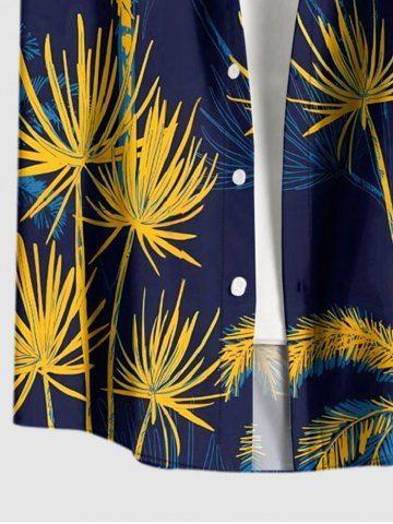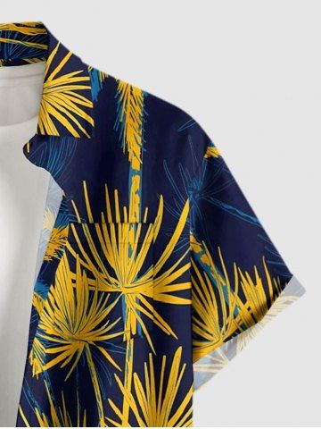 Short Sleeves Shirts > Plus Size Coconut Tree Plant Print Hawaii Button Pocket Shirt For Men