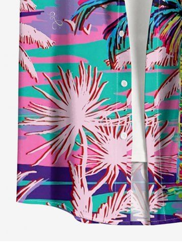 Short Sleeves Shirts > Plus Size Coconut Tree Plant Print Hawaii Button Pocket Shirt For Men