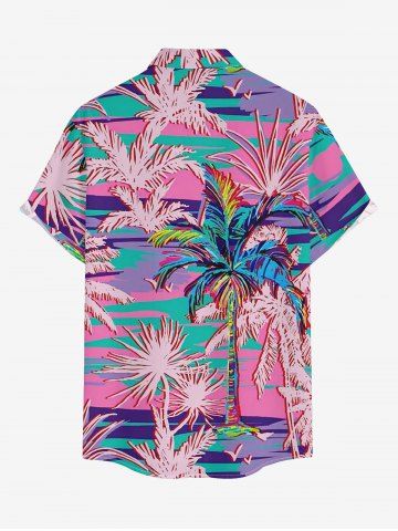 Plus Size Coconut Tree Plant Print Hawaii Button Pocket Shirt For Men - Lavender Purple - S