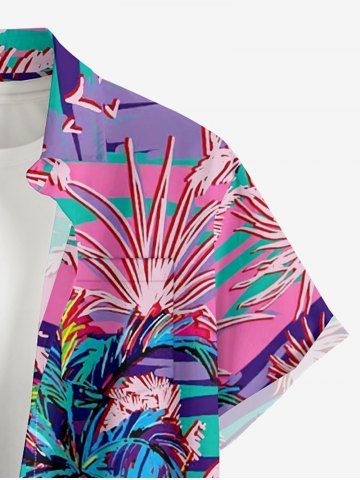 Plus Size Coconut Tree Plant Print Hawaii Button Pocket Shirt For Men - Lavender Purple - M