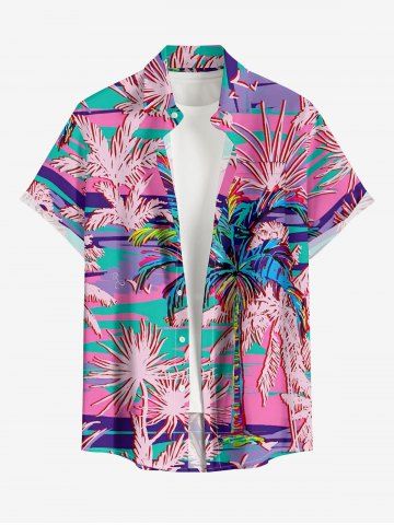 Short Sleeves Shirts > Plus Size Coconut Tree Plant Print Hawaii Button Pocket Shirt For Men