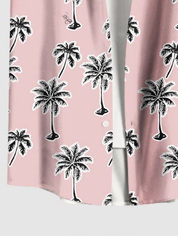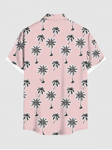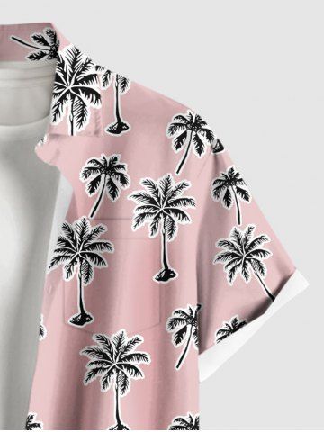 Plus Size Coconut Tree Print Buttons Pocket Hawaii Shirt For Men - Light Pink - S