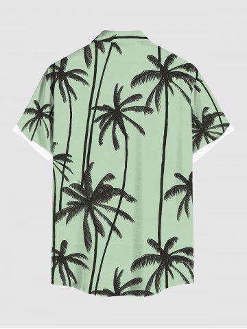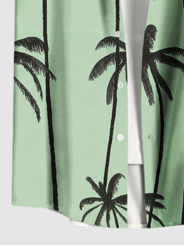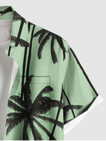 Plus Size Coconut Tree Print Buttons Pocket Hawaii Shirt For Men - Green - L