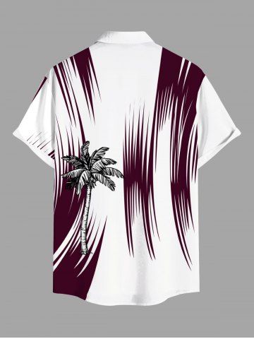 Plus Size Coconut Tree Print Buttons Pocket Hawaii Shirt For Men - White - Xl