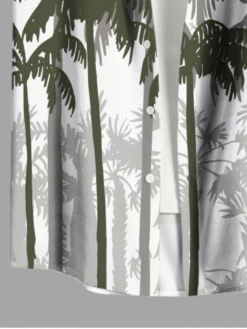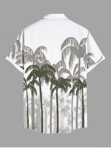 Plus Size Coconut Tree Print Buttons Pocket Hawaii Shirt For Men - White - Xl