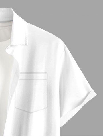 Plus Size Coconut Tree Print Buttons Pocket Hawaii Shirt For Men - White - S