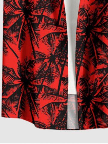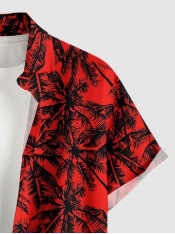 Plus Size Coconut Tree Print Buttons Pocket Hawaii Shirt For Men - Red - L