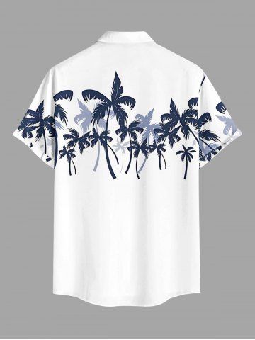 Plus Size Coconut Tree Print Buttons Pocket Hawaii Shirt For Men - White - L