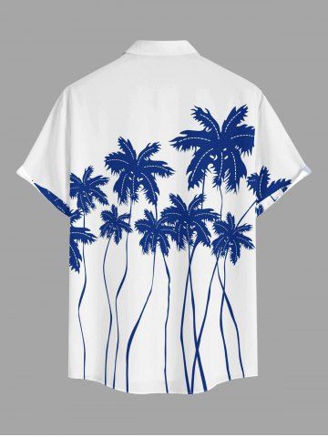 Plus Size Coconut Tree Print Buttons Pocket Hawaii Shirt For Men - White - L