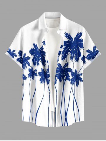 Plus Size Coconut Tree Print Buttons Pocket Hawaii Shirt For Men - White - Xl