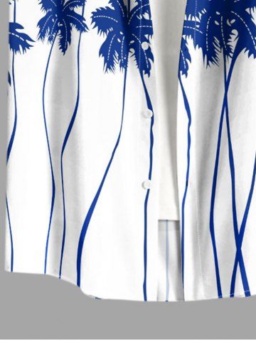 Plus Size Coconut Tree Print Buttons Pocket Hawaii Shirt For Men - White - 6xl