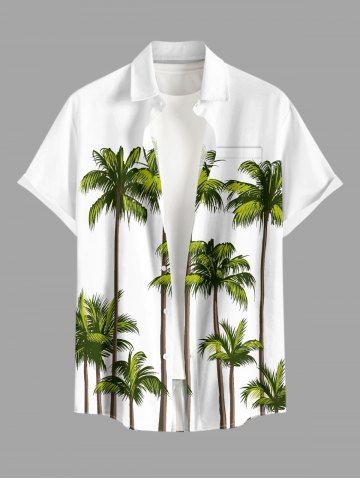 Plus Size Coconut Tree Print Buttons Pocket Hawaii Shirt For Men - White - S