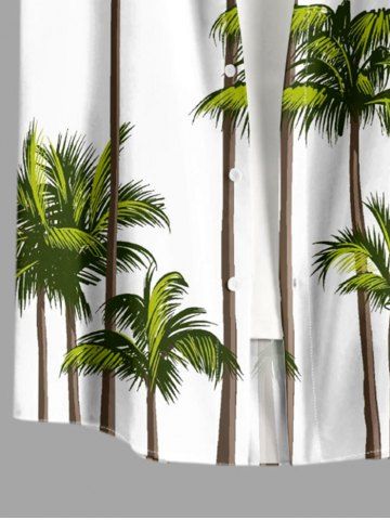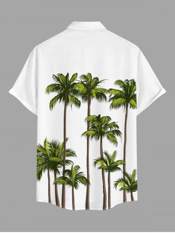 Plus Size Coconut Tree Print Buttons Pocket Hawaii Shirt For Men - White - Xl