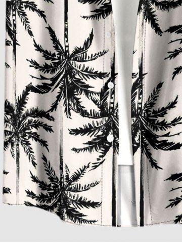 Plus Size Coconut Tree Print Buttons Pocket Hawaii Shirt For Men - Black - S